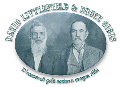 Early in 1861, wonderful stories reached California miners of a great gold discovery at Oro Fino, in Washington Territory. As a matter of fact there was no such a place in that Territory at that time, but it served to attract attention to new and wonderful "diggins," and to bring four men up to Portland, Oregon in search of the wonderful mines. These four men were David Littlefield, Henry Griffin, William Stafford, and G.W. Scriver - Mr. Littlefield is still active in Baker county, and his likeness appears on another page. On reaching Portland these men found the Oro Fino story to be a romance without any foundation. But while walking the streets of Portland to find out the facts of the case and take a new start they fell in with a man who had heard the story of the "Blue Bucket Mines", and was so full of it that he was confident he could lead a party right to the spot where the gold could be picked up in buckets full. This enthusiast, whose name was Adams, declared he had been with the party of immigrants and knew just how to go to the "Blue Bucket" find, and he produced three other men who vouched for him and corroborated his story, declaring they had been with Adams when the Blue Bucket gold was discovered. There were some valiant liars about Portland in those days. All that Adams wanted was men, arms, and supplies enough to make the trip and stand off the Indians. A party of fifty-three men in addition to the eight already mentioned was soon formed, well armed and equipped, and on the way to the Blue Mountains, to find the long lost "Blue Bucket." Leaving The Dalles the party proceeded southeast crossing Des Chutes river at the old Emigrant crossing, then up that stream to Crooked River, then up Crooked River to its headwaters near Wagon Tire mountain, then out on to the desert where the water gave out, and Adams showed signs of being lost. To make a long and disagreeable story short, it is enough to say, that the party wandered around for weeks among the headwaters of Silvie's river, John Day river and finally reached Malheur river and run up against the Strawberry Ranch. During all this disappointment the curses against Adams and his three friends were both loud and deep. Threats to kill him unless he found the mines within three days were made; then one day only was given him; and then he was tried by a jury and expelled from the camp under penalty of death if he returned. Littlefield and his three friends saved the poor man's life from day to day because he worked harder than any other man in the party. Littlefield secretly carried food to the man after he had been expelled from the camp, and saved him from starvation. Finally the party broke up, the great majority returning to the Willamette valley. The four Californians and a few others then started on an independent prospecting expedition, and wandering through the mountains panning the sand in every little stream, they finally crossed over the divide between Burnt and Powder rivers, just above the old town of Auburn and coming down Elk Creek they camped on the night of October 23, 1861, in a ravine which they afterwards named Griffin gulch. Here Henry Griffin sunk a prospect hole three feet deep to bed rock and struck the first gold found in Eastern Oregon - not counting the Blue Bucket myth. From this discovery on Griffin gulch gold discoveries were extended all over the Blue Mountains region. The question may be asked, if there ever was such a discovery as the Blue Bucket find why was it not found again. Hundreds of men have for many years searched for those mines. There can be no doubt but what the Blue Bucket discovery has been found and worked out long ago. The Blue Bucket find was probably in Grant county in the Canyon City region, and the original finders of that gold were simply lost on the trail west, hurrying through the country in fear of the Indians, and for that reason could never go back and find the place again.