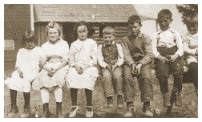 Photo Left: Students with their teacher Viola Martin in were Ruby Goodwin, Howard Stowe and Guy, Richard and Ruth Tyson. Photo from collection of Lena Ebert.
